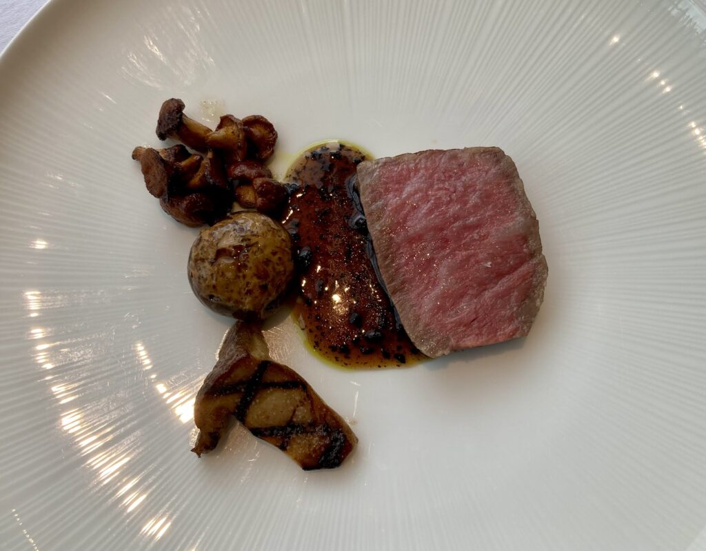 付け合わせはきのこです。さらにソースもトリュフなので、きのこの旨味がお肉をさらに引き立てます。