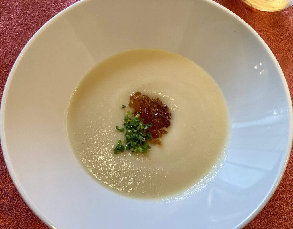 玉ねぎの冷たいスープとコンソメジュレ
