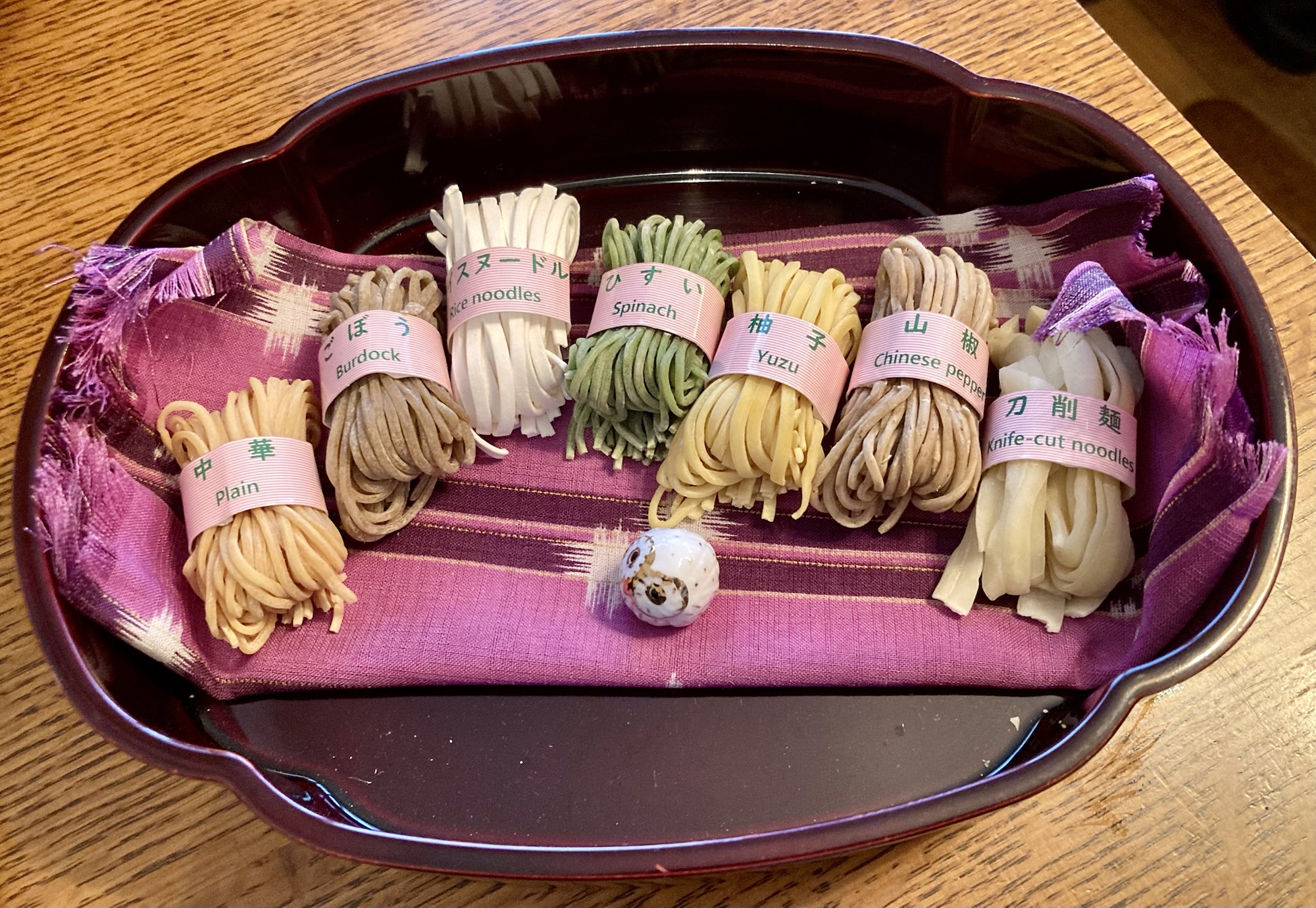 柚子の麺は表面がつるっとしており、噛んでいるとほのかに柚子の香りと酸味を感じます。