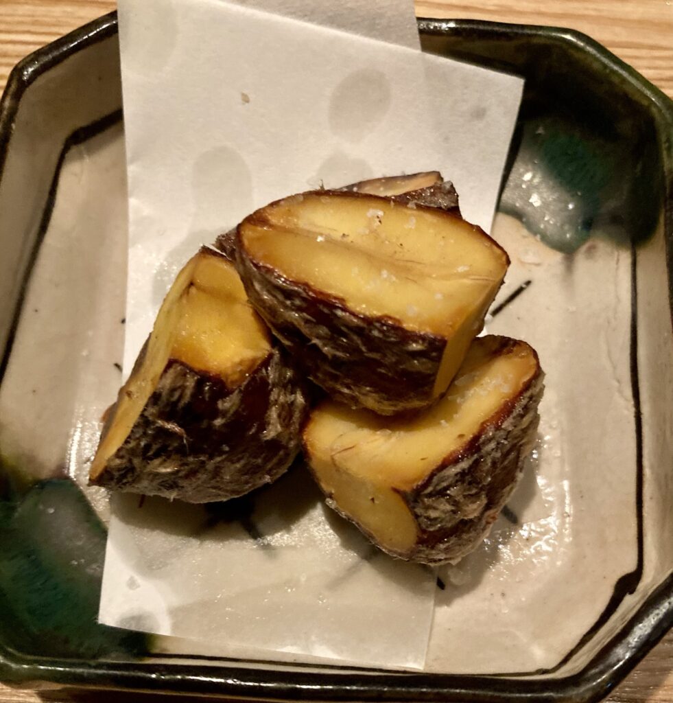 栗はほんのり甘いのですが、岩塩バターによって甘塩っぱい一品になっています。