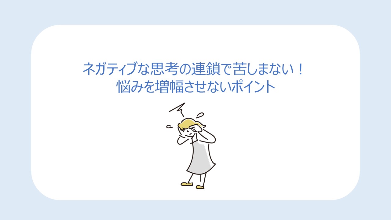 今回は、最初の悩みを必要以上に反復したり、別の悩みに広げないための考え方と対処法をご紹介しました。