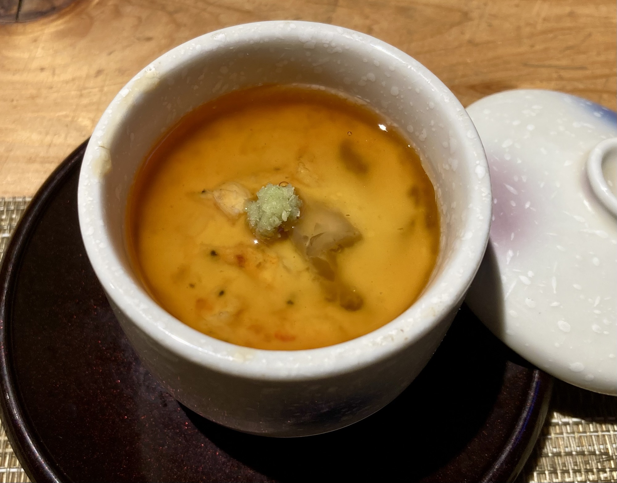 とろとろの茶碗蒸しの中にもちもちのよもぎ麩が入っています。