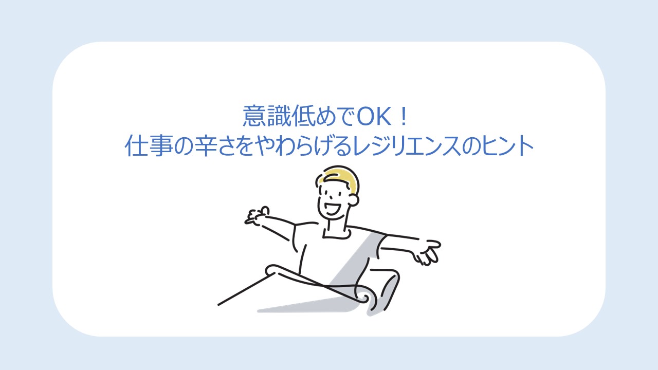 仕事が辛いと感じるとき、「もっと頑張らなければ」「前向きにならなきゃ」と思うほど、余計に苦しくなることがあります。けれど、レジリエンス――心の回復力――は、意識高く頑張らなくても、日常のちょっとした考え方や習慣で自然に育てられるものです。今回は、肩の力を抜きながら、仕事を少しでも穏やかに続けられる“意識低めのレジリエンスのヒント”をご紹介します。