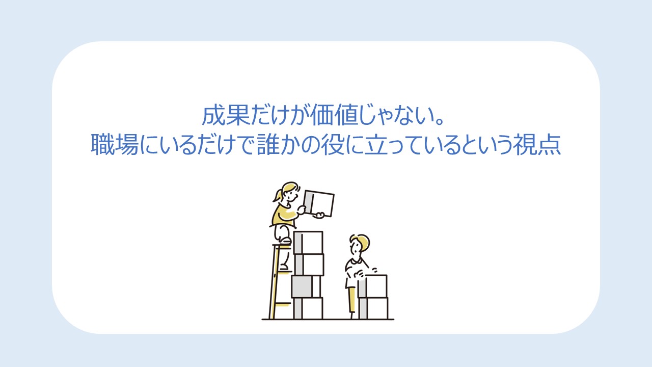 成果だけが価値じゃない。職場にいるだけで誰かの役に立っているという視点