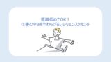 • 休日の安心を平日に持ち込む 休憩時間に深呼吸をする、好きな飲み物を味わう、静かな音楽を聴くなど、休日の平穏を小さく再現する。