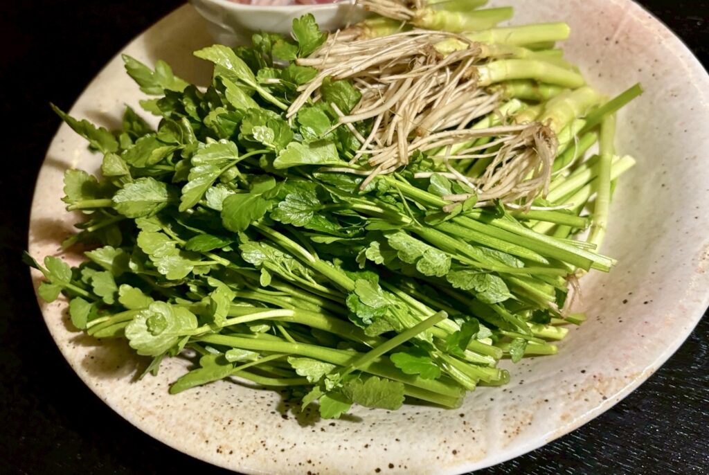 根っこまで美味しいせりが、出汁を吸ってシャキシャキ。